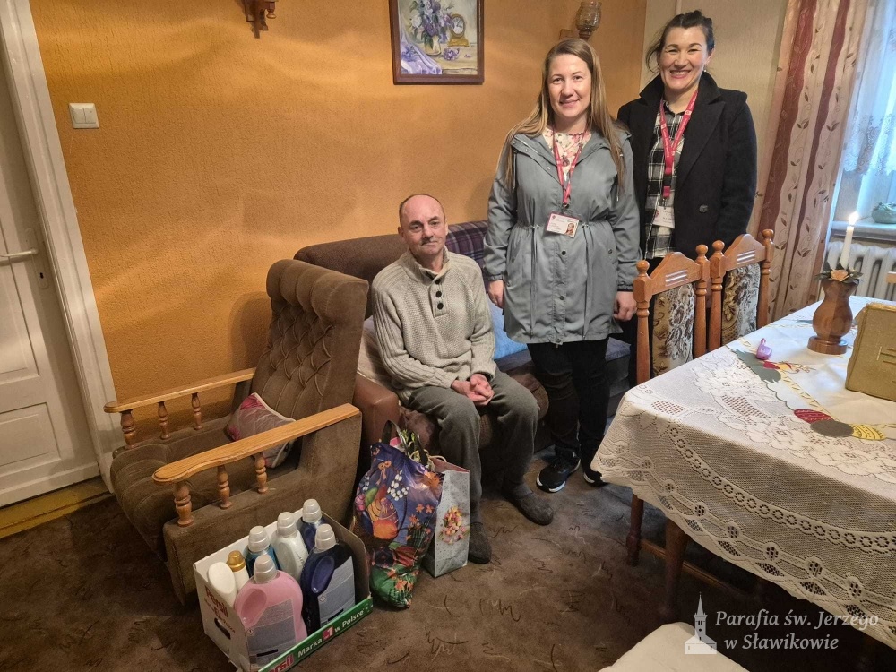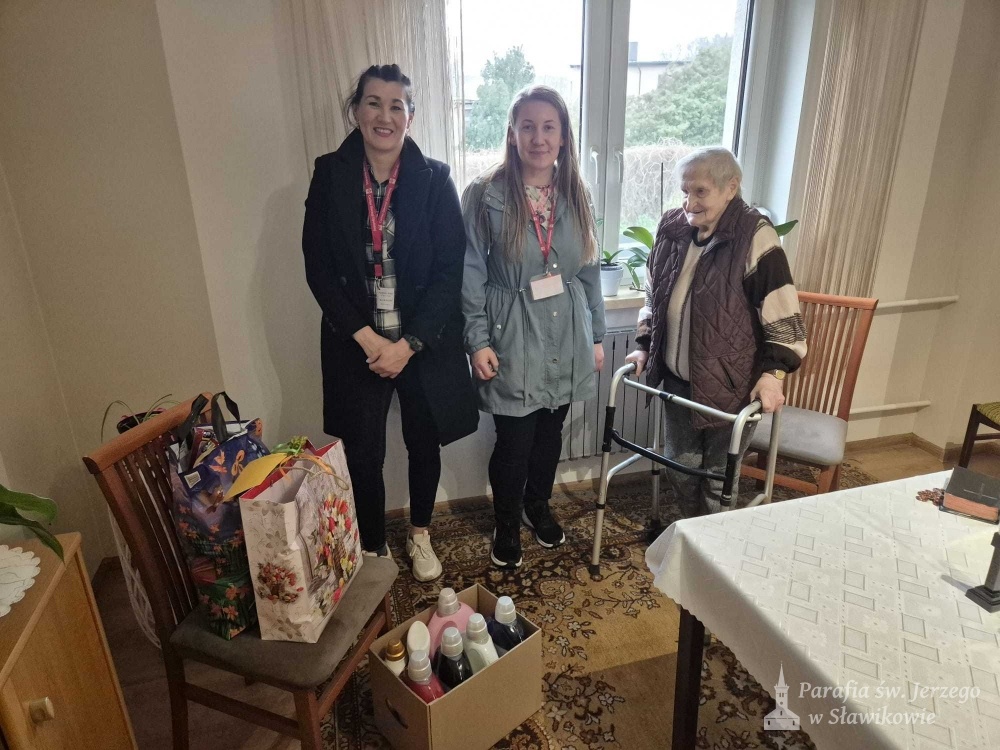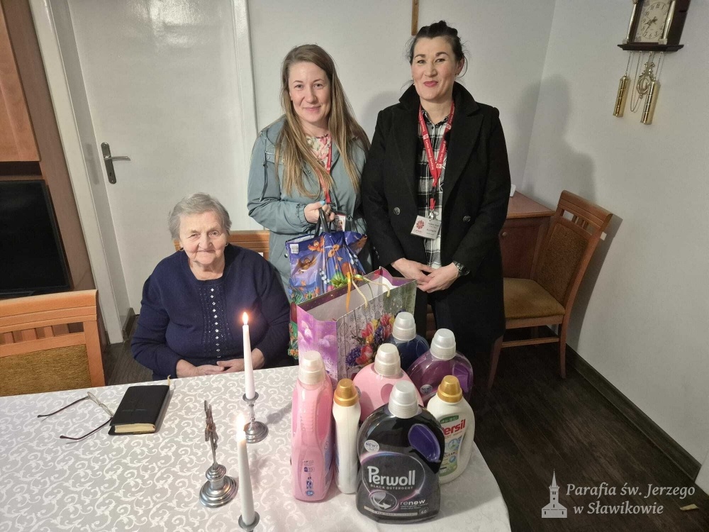 Z ogromnym zaangażowaniem panie z Parafialnego Zespołu Caritas, wraz z księdzem, odwiedziły osoby chore oraz mieszkańców Domu Opieki "Domowe Zacisze", niosąc nie tylko pomoc materialną, ale także dobre słowo, modlitwę i obecność.